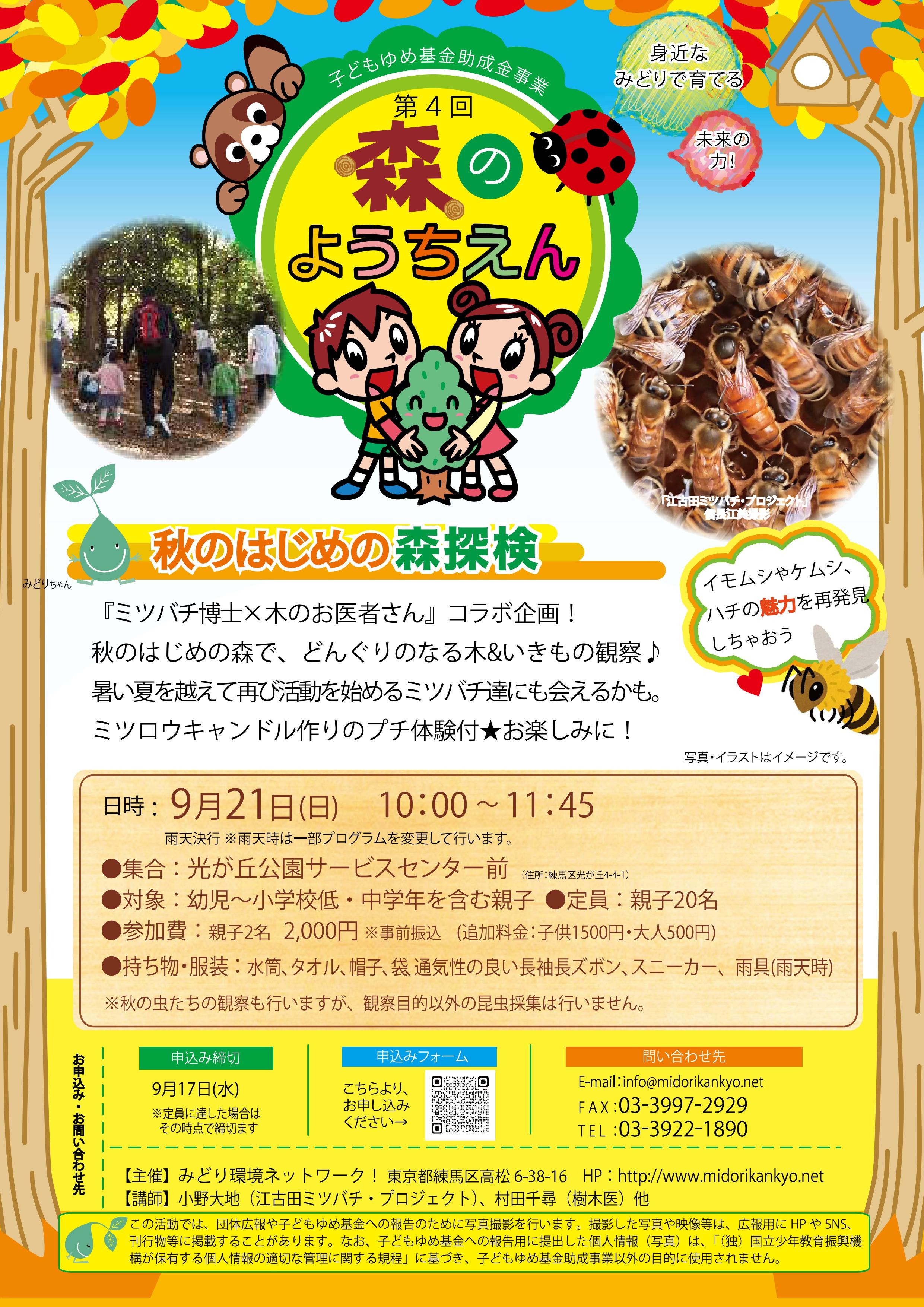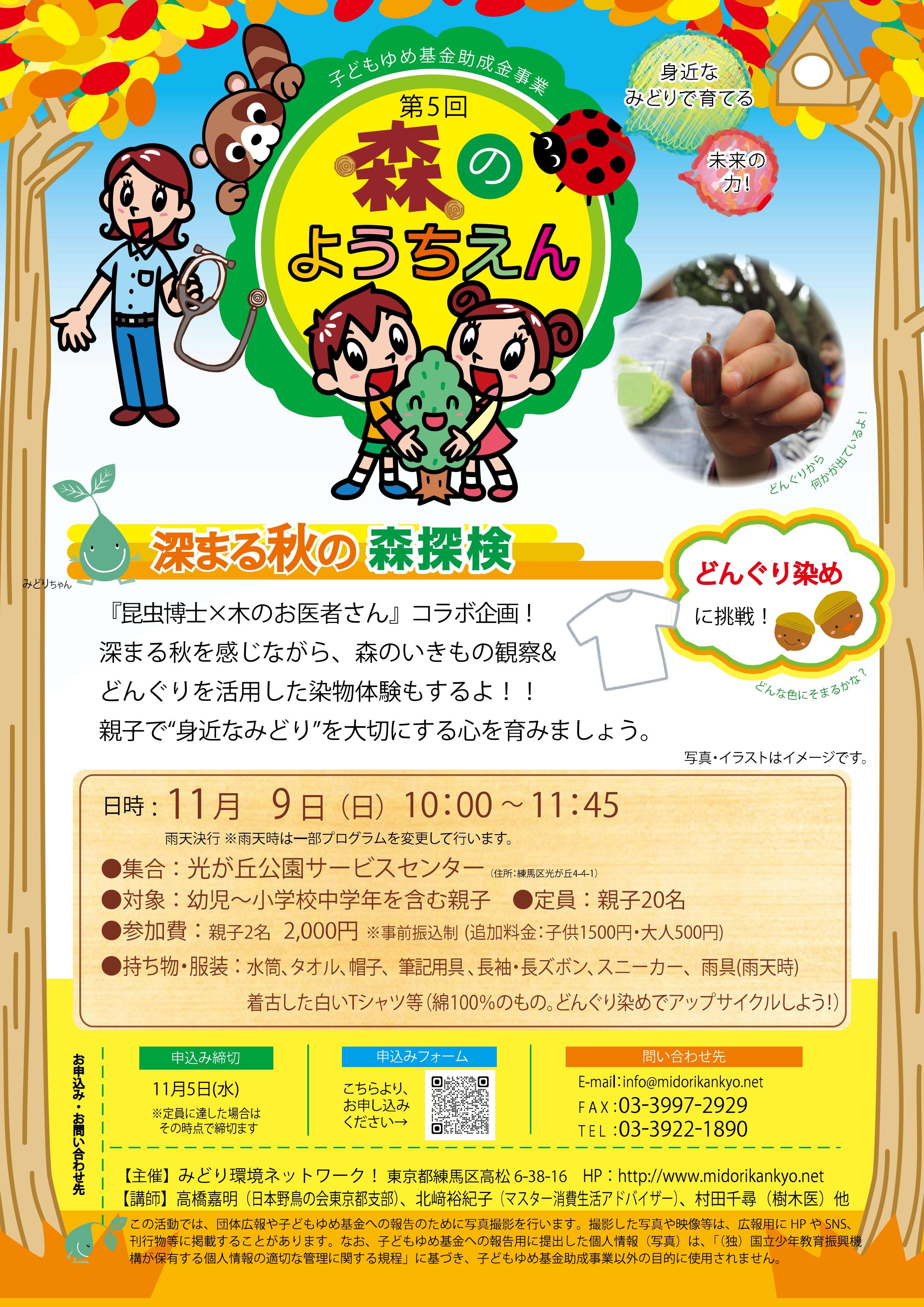 雨の森を楽しむプログラムに一部変更して実施しますが、集合場所が変わる可能性があります。